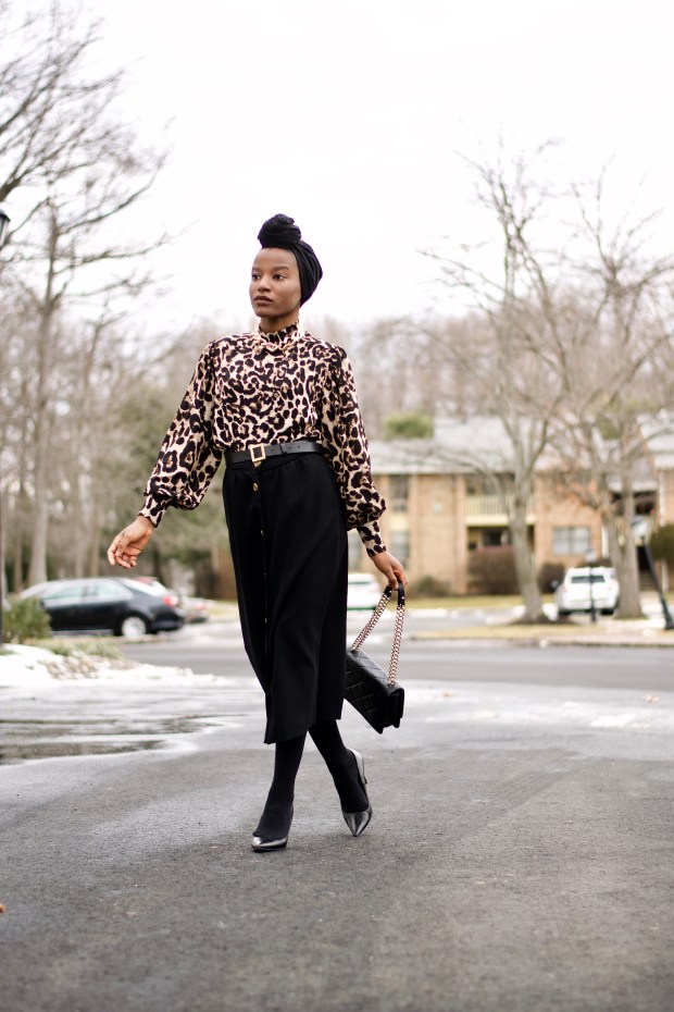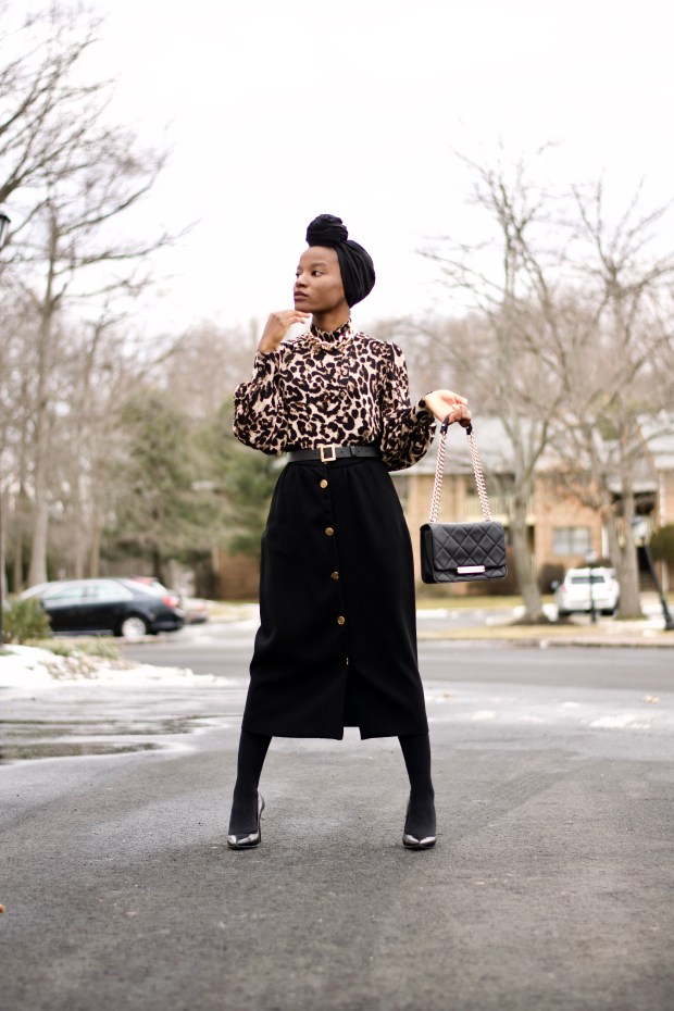 As much as I admire taking on new trends, it’s always comforting to have classic styles to fall back on. I’m an admirer of everything classic ranging from prints to silhouettes. And this week, I styled to work with the cream of the crop kind of classics…leopard print and buttondown black skirt. This outfit reminds me of everything boss and beyond. I fel like a sophisticated executive, thanks to the lush vibes from the leopard print blouse.
