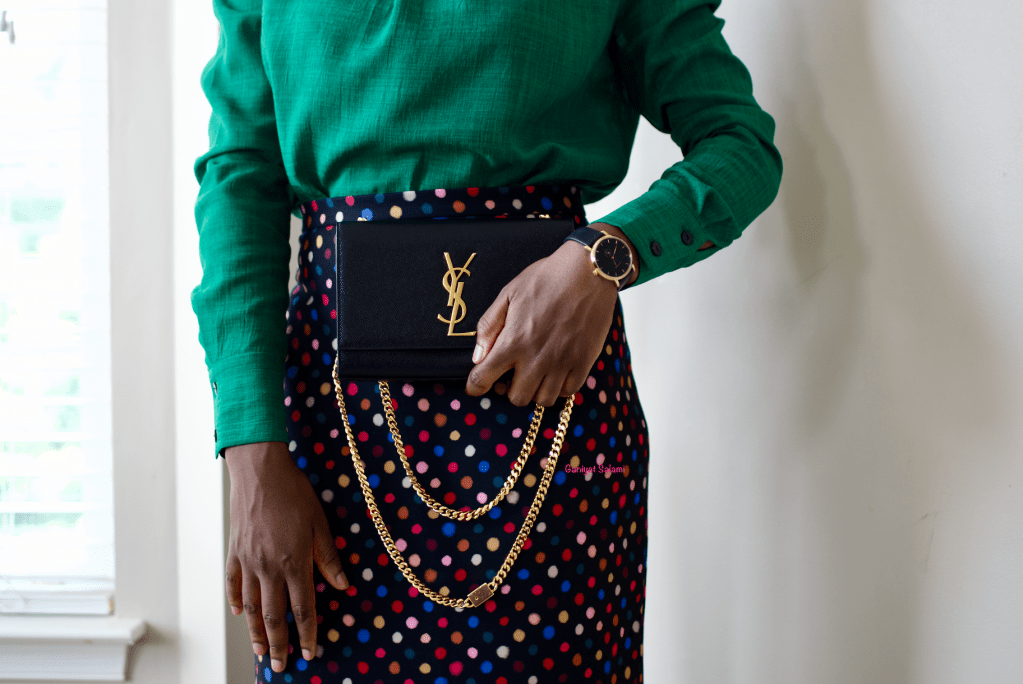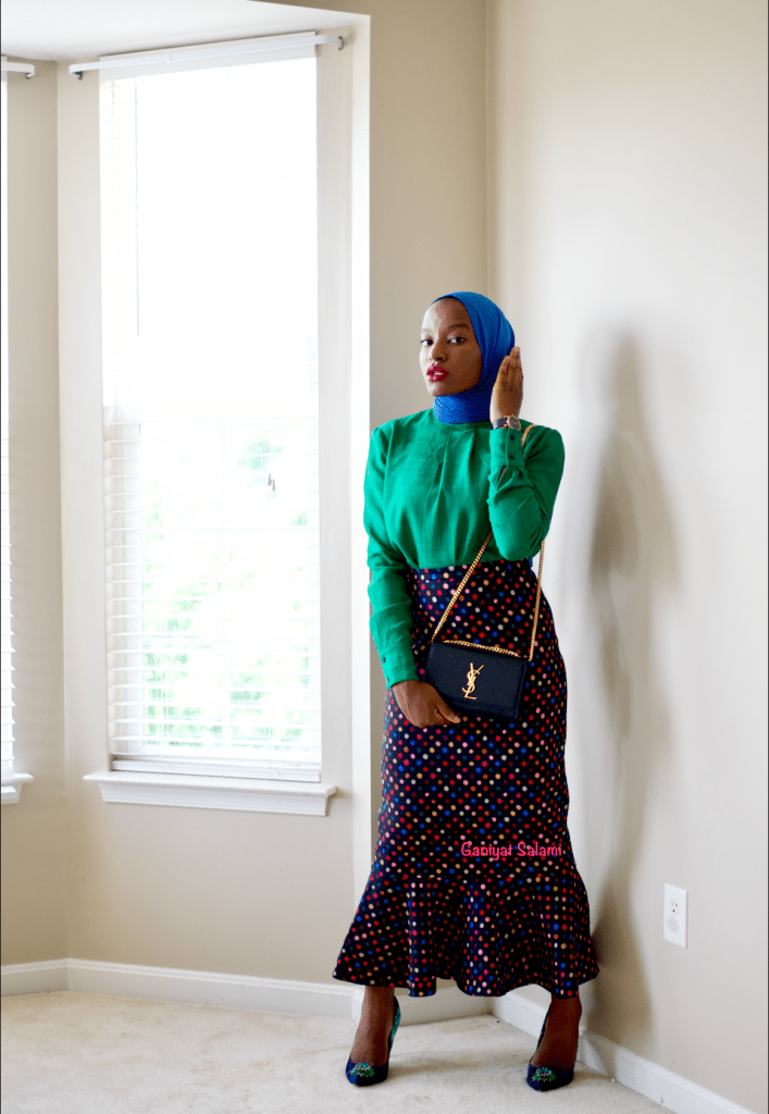 I’m an unapologetic color addict…but who isn’t? Colors appeal to me like a magnet attracting pins…lol. You get the gist…I really really really love colors. When it comes to styling, I take it upon myself to look bright and boss with colors on a weekly basis. And last week was no different. I strutted to work glowing colorfully in a bold green blouse and polka dot skirt. That’s not all. Wait for it…I threw on floral pumps to further spruce up my outfit.